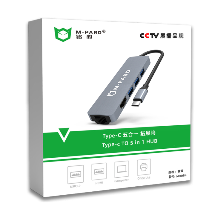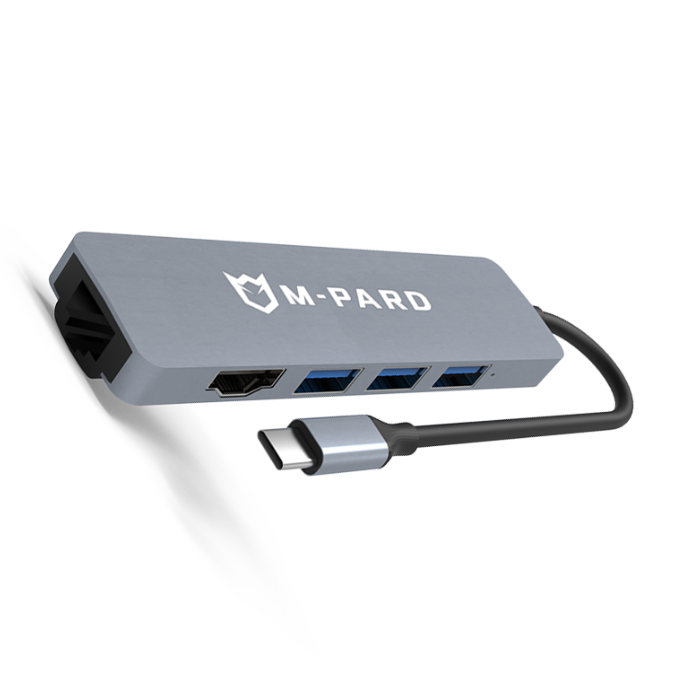 BỘ CHIA TH TYPE-C ->3USB 3.0 + HDMI + LAN 20CM MD084 M-PARD