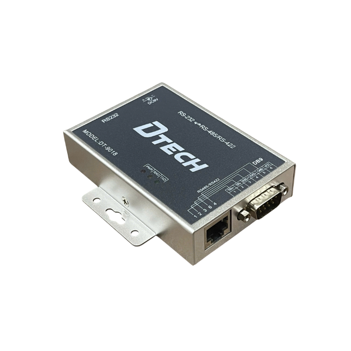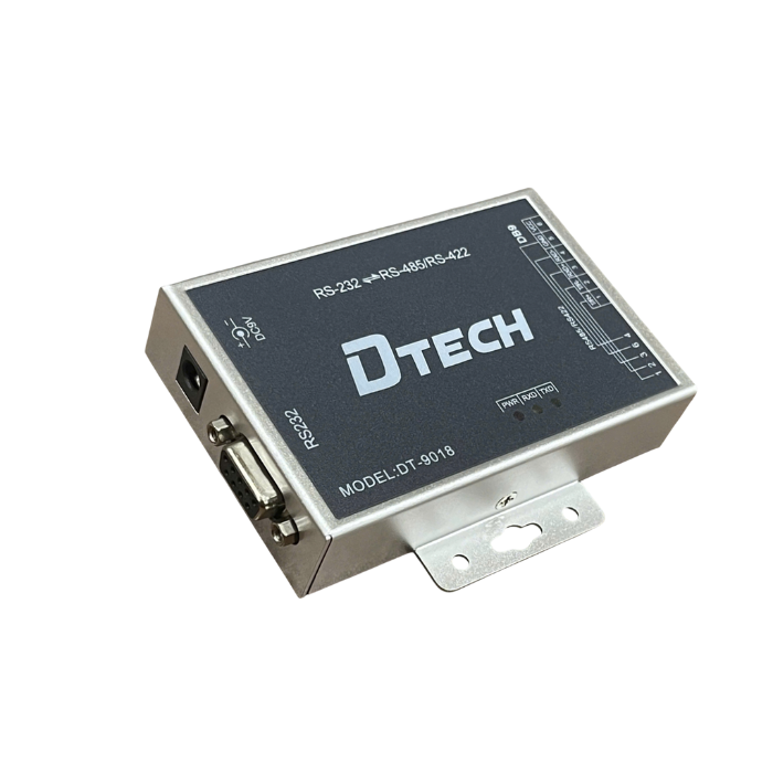 DT-9018 là bộ chuyển đổi hai chiều RS232 sang RS485/RS422 phổ thông, được thiết kế đặc biệt cho nhu cầu mở rộng khoảng cách truyền RS232 và có bộ chuyển đổi giao diện truyền bus RS485/RS422. Nó có công nghệ điều khiển bảo vệ va chạm dữ liệu tích hợp, giao diện với bảo vệ TVS triệt tiêu điện áp tức thời. Để thích ứng với các đặc điểm của hệ thống dây dẫn đa bus RS485/RS422, trụ đầu cuối, DB9, giao diện vật lý RJ45 được cung cấp tại cổng, có thể thích ứng hiệu quả với nhiều chế độ đấu dây khác nhau, do đó bus từ nhiều hướng có thể tiếp xúc tốt, kết cấu thuận tiện. Thiết bị sử dụng vỏ nhôm chống oxy hóa và phun cát, có thể che chắn hiệu quả nhiễu bên ngoài và tản nhiệt tốt.