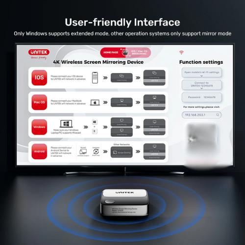 UNITEK V1183A01 – Thiết Bị Trình Chiếu Không Dây 4K@60Hz Chuyên Nghiệp, Đa Nền Tảng