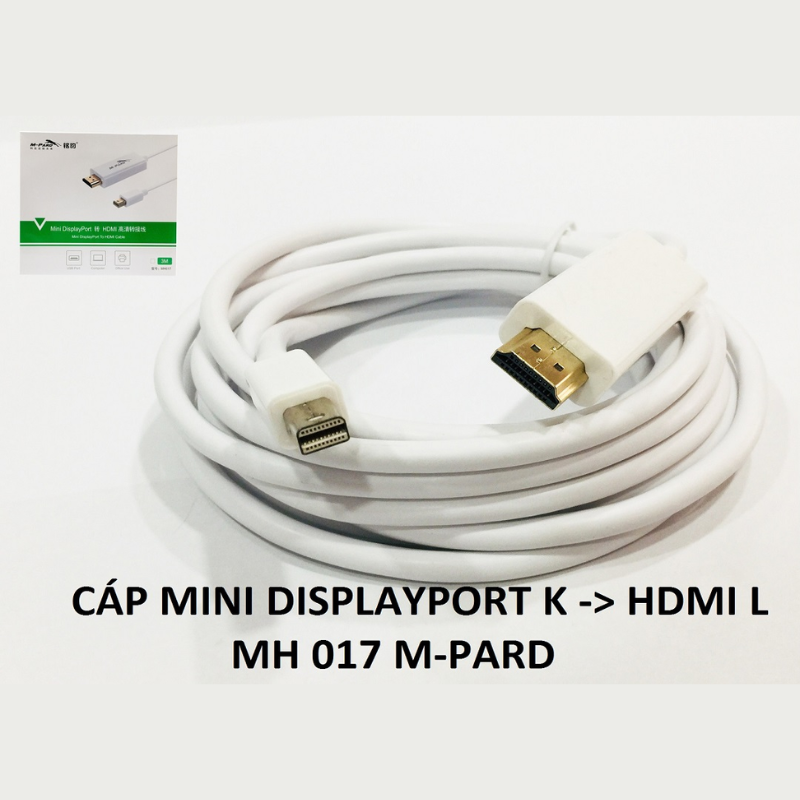 CÁP CHUYỂN ĐỔI CỔNG MINI DISPLAYPORT KIM RA HDMI KIM 3M MH 017 M-PARD chuyển đổi từ cổng Mini displayport/ Thunderbolt sang cổng HDMI của Tivi, máy chiếu… Cáp chuyển đổi MH017 hỗ trợ truyền cả âm thanh, hình ảnh.
