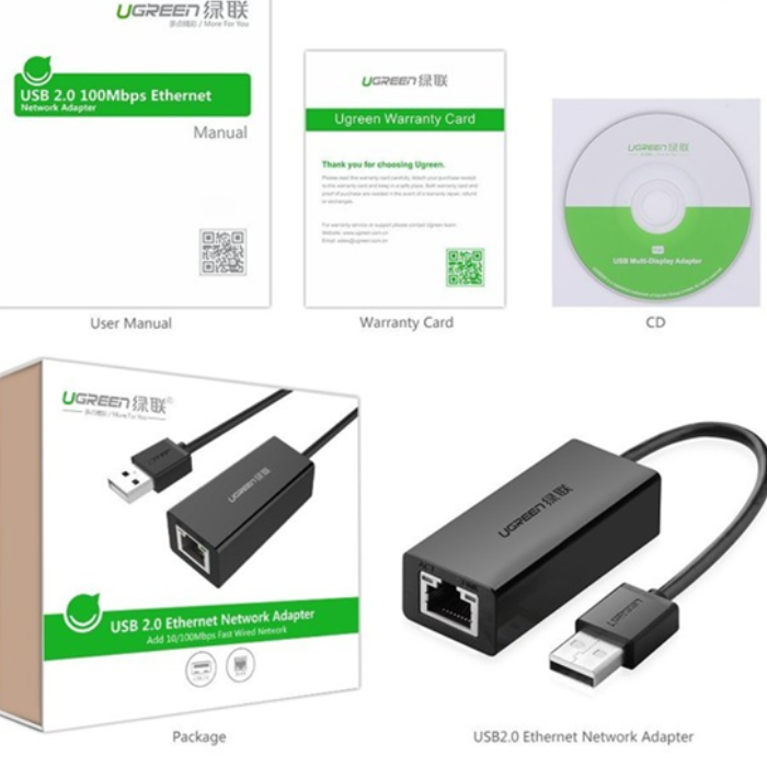 Thông tin sản phẩm : USB to Lan 2.0 hỗ trợ Ethernet 10/100Mbps Ugreen 20254 ( màu đen )