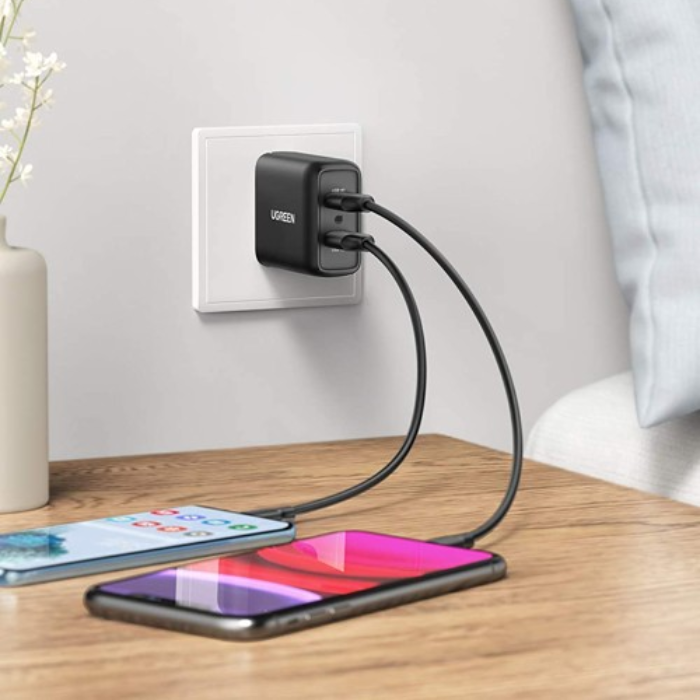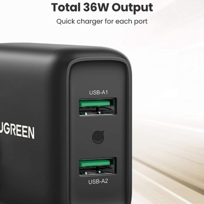 Bộ sạc nhanh 36W Ugreen 70151 phích cắm điện của điện thoại di động có sạc nhanh kép 3.0 cổng USB có thể sạc hai thiết bị sạc nhanh cùng một lúc. Mỗi cổng QC của bộ sạc nhanh cung cấp công suất sạc lên đến 18W, cho phép bạn sạc đầy gấp đôi Samsung S10 chỉ trong 100 phút.