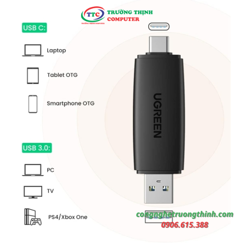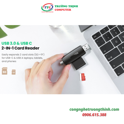Đầu đọc thẻ nhớ SD/TF 2 trong 1 USB-A & USB-C Ugreen 80191