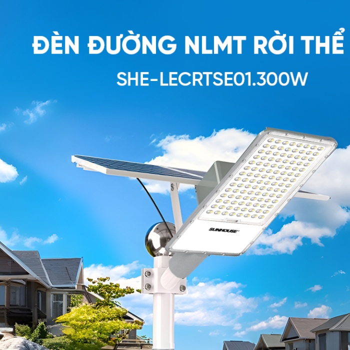 - Đèn đường rời thể NLMT Eco SHE-LECRTSE01.300W có tấm pin lớn, dung lượng pin cao, khả năng chiếu sáng liên tục lên đến 15 giờ. Sở hữu nhiều tính năng nổi bật vì vậy đèn là sự lựa chọn tuyệt vời cho việc chiếu sáng không gian ngoài trời.