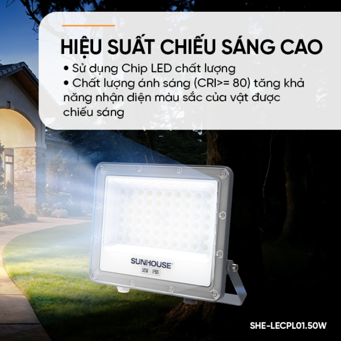 Đèn Pha led ECO Sunhouse 50W SHE-LECPL01 Sử dụng Chip LED ,Tuổi thọ 25.000 giờ