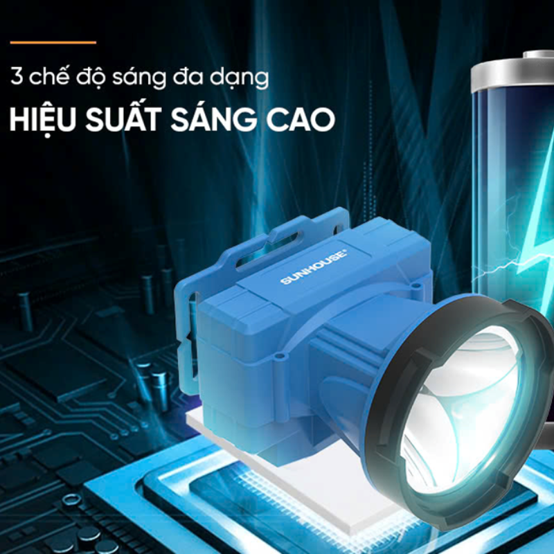 - Đèn đội đầu SUNHOUSE SHE-LECDD01 sở hữu thiết kế nhỏ gọn, kết hợp dây đeo co giãn linh hoạt, mang lại sự thoải mái và tiện lợi khi sử dụng trực tiếp trên đầu. Điểm đặc biệt của sản phẩm là bộ sạc tích hợp ngay trong thân đèn, tiện lợi khi sử dụng.
