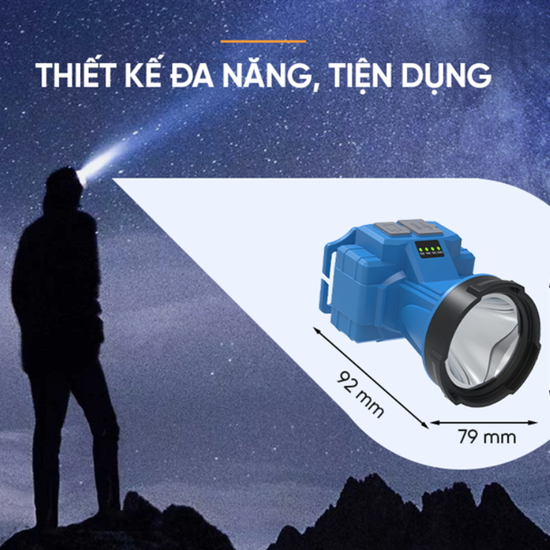 - Bộ sạc được thiết kế ngay trên thân đèn, có thể cắm sạc để sạc sản phẩm vô cùng tiện lợi. Đèn báo sạc sẽ cho biết khi nào đèn đã được sạc đầy.