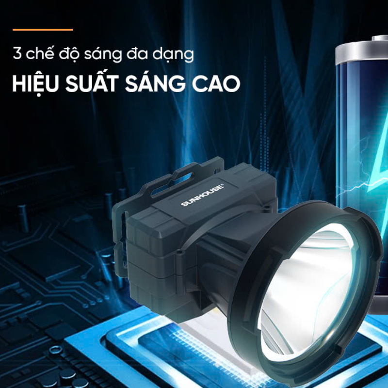 Đèn đội đầu SUNHOUSE SHE-LECDD02 sở hữu thiết kế nhỏ gọn, kết hợp dây đeo co giãn linh hoạt, mang lại sự thoải mái và tiện lợi khi sử dụng trực tiếp trên đầu. Điểm đặc biệt của sản phẩm là bộ sạc tích hợp ngay trong thân đèn, tiện lợi khi sử dụng.