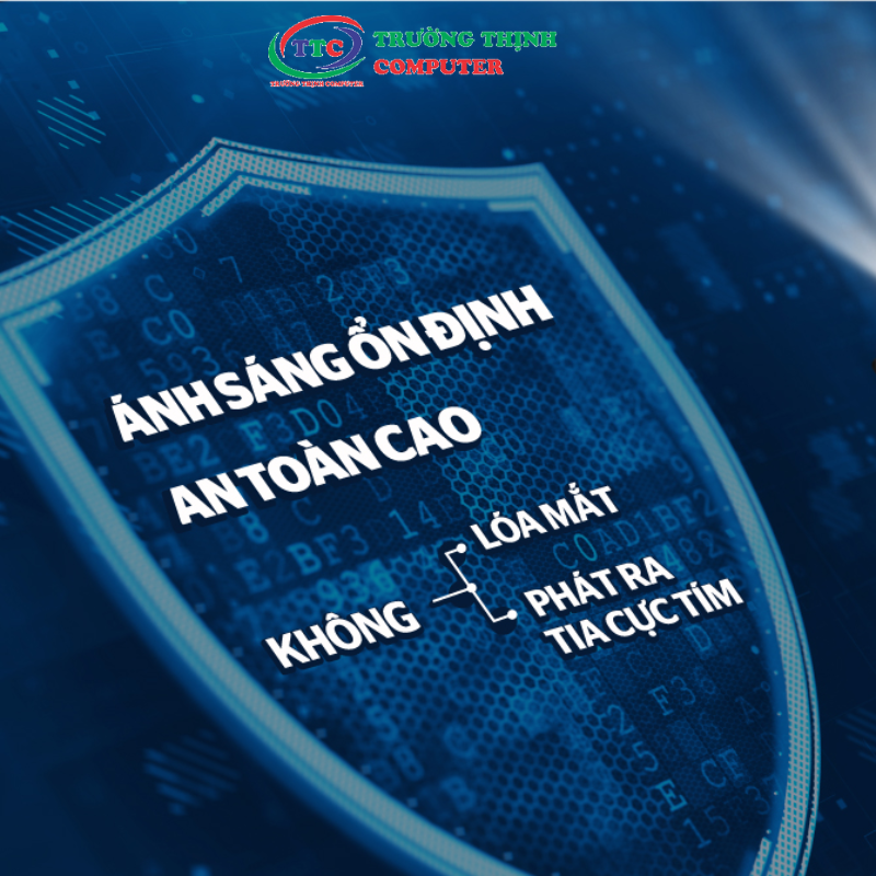 - Ánh sáng từ đèn LED không sinh ra nhiệt, không phát ra tia cực tím, bức xạ hồng ngoại và không có các tác nhân gây hại cho người dùng. Chất lượng ánh sáng ổn định, tự nhiên, chống chói lóa, giảm nguy cơ tật khúc xạ cho mắt khi học tập, làm việc kéo dài.