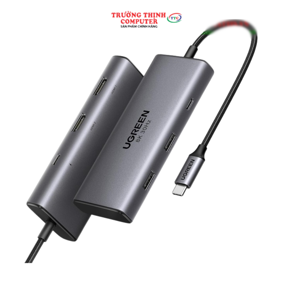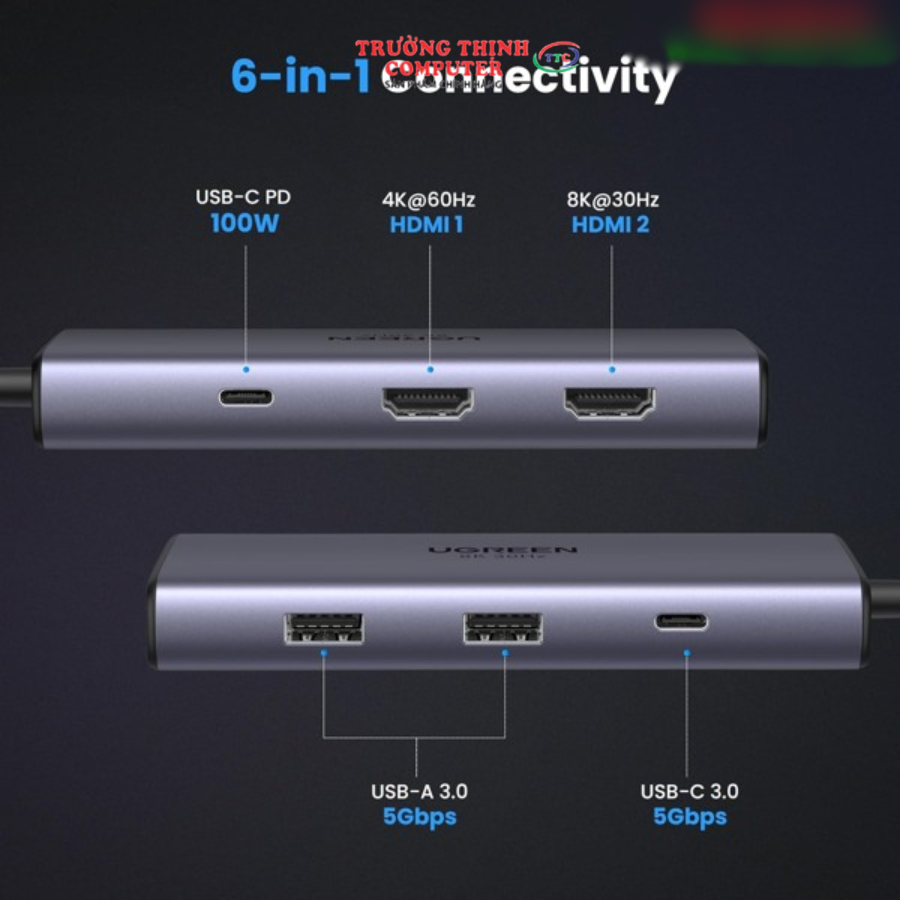Hub USB Type-C 6 trong 1 ra 2*HDMI 8K@30Hz, USB Type-C, USB-A 3.0, Sạc PD 100W Ugreen 15852