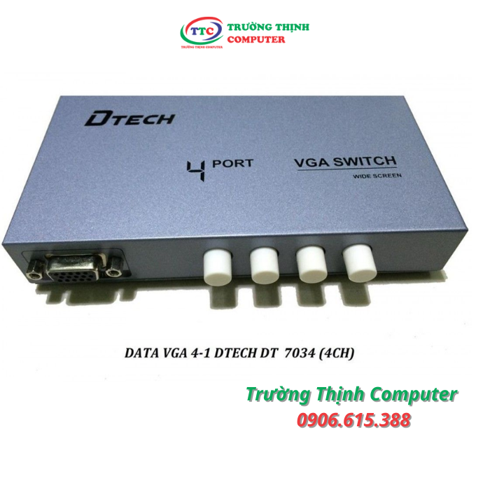 - Bộ chuyển VGA Dtech DT-7034 cho phép 4 máy tính để chia sẻ 1 màn hình, máy chiếu. Hoặc ngược lại, màn hình, máy chiếu để chia sẻ 1 máy tính nhưng không cùng một lúc.