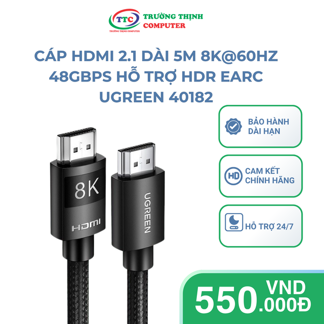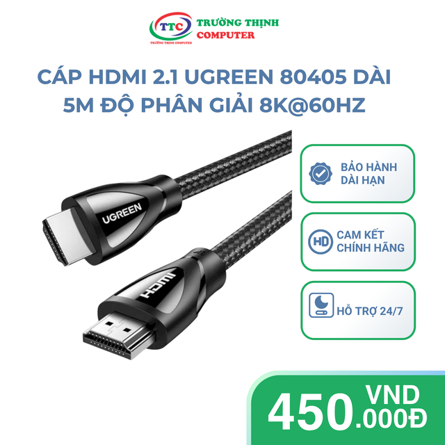 - Cáp HDMI 2.1 Ugreen 80405 dài 5M 8K@60Hz với tốc độ làm mới liên tục, truyền khung nhanh, chuyển đổi phương tiện nhanh và chế độ trễ tự động thấp, cáp hdmi 2.1 này cung cấp cho bạn lối chơi mượt mà và chính xác hơn.