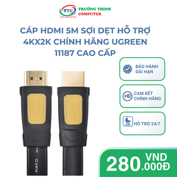 - Cáp tín hiệu HDMI dẹt dài 5m chính hãng Ugreen 11187 Cho phép độ phân giải video vượt xa 1080p, hỗ trợ màn hình thế hệ tiếp theo sẽ cạnh tranh với hệ thống Digital Cinema sử dụng trong nhiều rạp chiếu phim thương mại.
