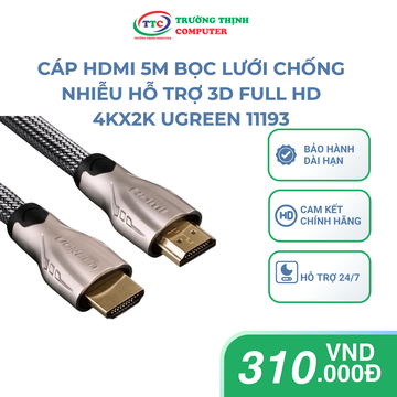 13 . Cáp HDMI 5M bọc lưới chống nhiễu hỗ trợ 3D full HD 4Kx2K chính hãng Ugreen 11193