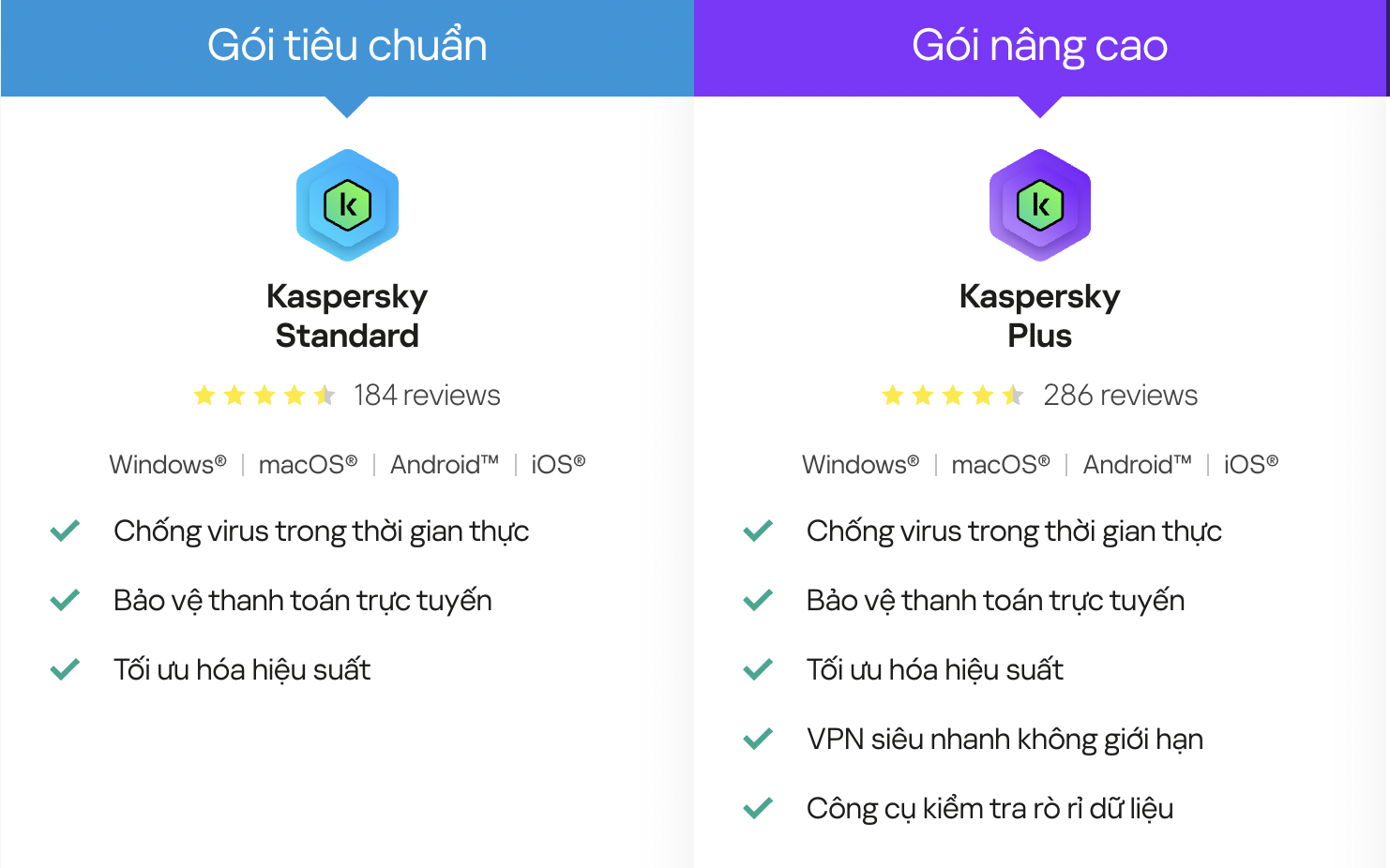 Khi tìm kiếm phần mềm diệt virus Kaspersky, nhiều người dùng thường băn khoăn không biết nên chọn Kaspersky Standard hay Kaspersky Plus để đáp ứng nhu cầu bảo mật.