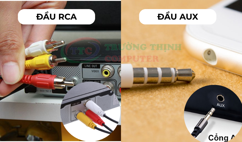 Phân biệt đầu dây AUX và RCA trong dây cáp loa, dây amply