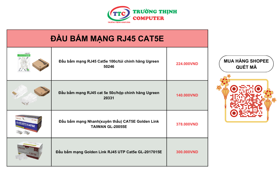 3.Đầu bấm mạng Nhanh(xuyên thấu) CAT5E Golden Link TAIWAN GL-20055E