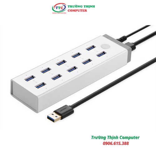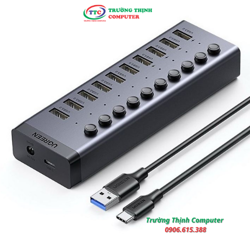 2.3. Bộ HUB chia 10 cổng USB 3.0 5Gbps vỏ nhôm, công tắc Ugreen 30779 (kèm nguồn 12V4A)