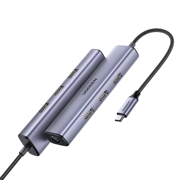 - Hub chia USB Type-C to 3 cổng USB 3.0 Type-A kèm Lan Gigabit, vỏ nhôm chính hãng Ugreen 60600