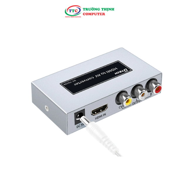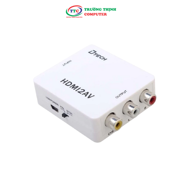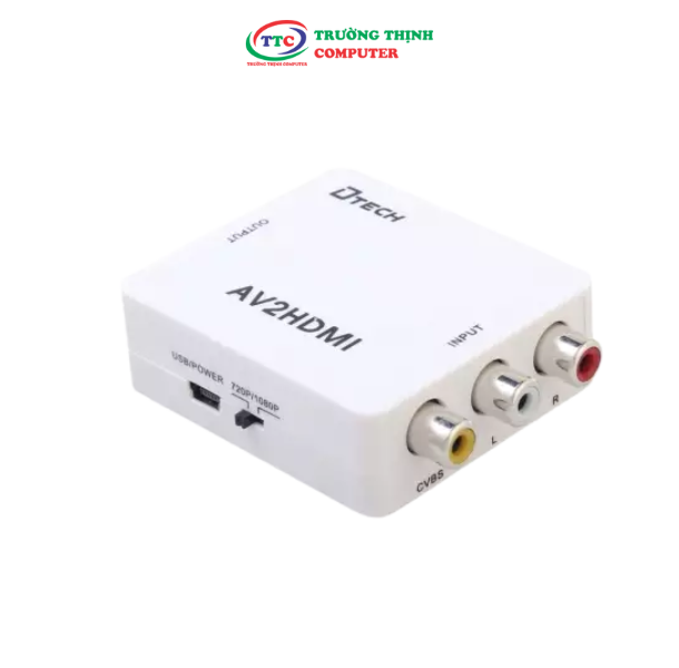 - Bộ chuyển đổi AV sang HDMI Dtech DT-6518 sử dụng để kết nối các thiết bị phát AV (DVD, Bluray Player, HD player, Android TV, Camera...) lên màn hình LCD, HDTV, Máy chiếu... Sản phẩm giúp chuyển đổi tín hiệu AV video kèm audio sang HDMI một cách dễ dàng.
