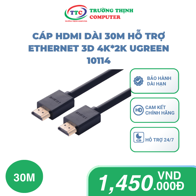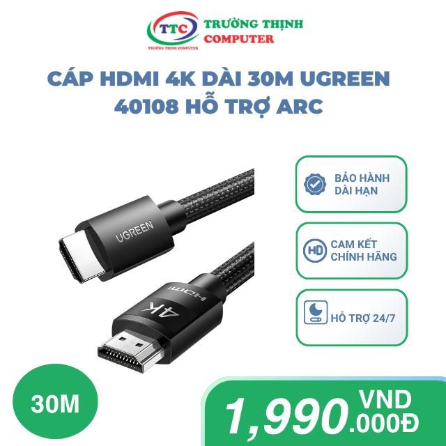 - Cáp HDMI 1.4 Dài 30M Ugreen 40108 là dòng sản phẩm cáp HDMI cao cấp mới nhất của thương hiệu Ugreen được nâng cấp nguyên vật liệu, chất lượng tốt nhất bao gồm lõi thuần đồng 100 và các ưu điểm kể trên mang đến khả năng truyền tải hình ảnh và âm thanh độ phân giải cao lên đến 4K (3840 * 2160@30Hz) ổn định nhất.