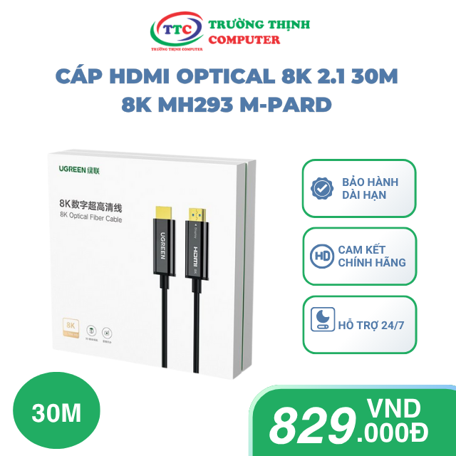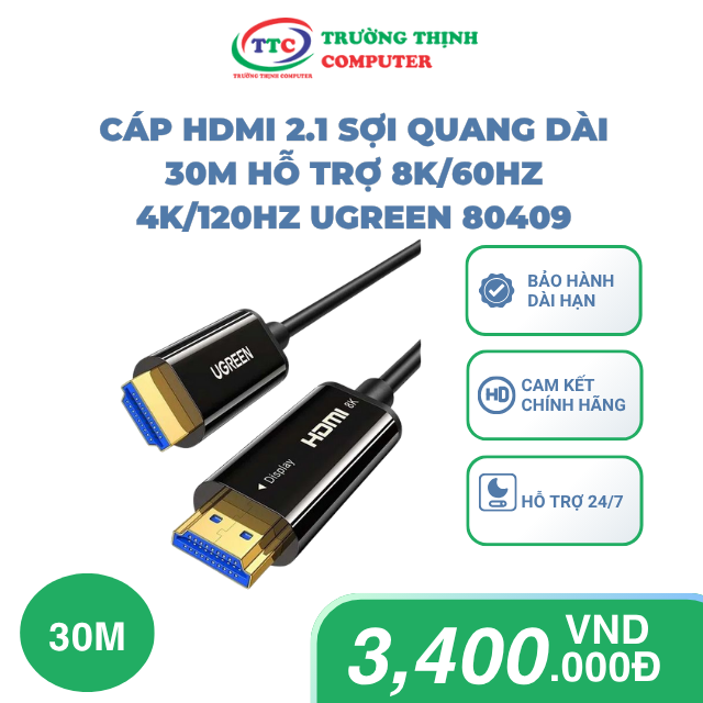 - Cáp HDMI 2.1 sợi quang dài 30M hỗ trợ 8K/60Hz,4K/120Hz HDR, EARC Ugreen 80409