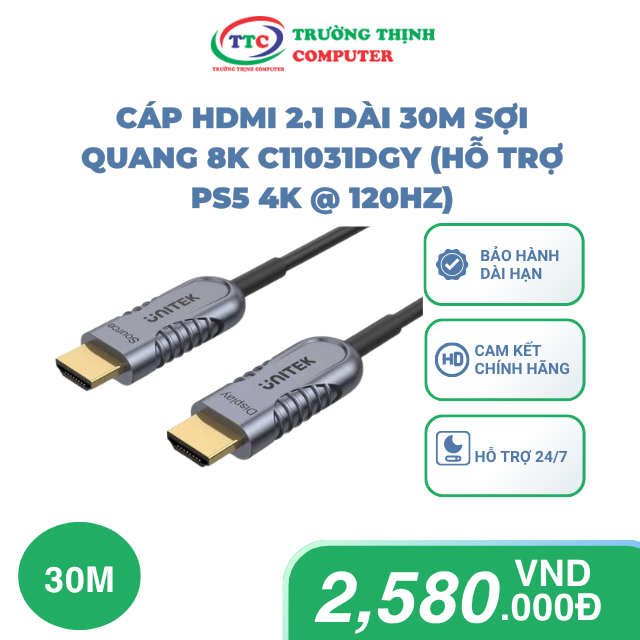 5. Cáp HDMI 2.1 dài 30M Sợi Quang 8K C11031DGY (Hỗ trợ PS5 4K @ 120Hz)
