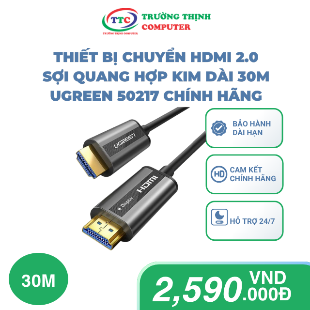 - Thiết Bị Chuyển HDMI 2.0 Sợi Quang Hợp Kim Dài 20M Ugreen 50217 Chính Hãng là dòng cáp cao cấp được nhiều người tiêu dùng lựa chọn sử dụng trên thi trường hiện nay, sản phẩm được áp dụng để kết nối với HDTV của bạn vào thiết bị, truyền hình 3D, Roku, Boxee, Xbox360, PS3, Apple TV, Streaming Player, HD Cable Box, PC hoặc bất kỳ thiết bị HD với một đầu ra HDMI nhờ được tích hợp chip Photoelectric Conversion cho phép truyền tải dữ liệu bằng tín hiệu quang học giúp kết nối các thiết bị ở khoảng cách cực xa với độ phân giải UltraHD 4K@60Hz mà không bị delay hay giật lag với chiều dài lên đến 100M.