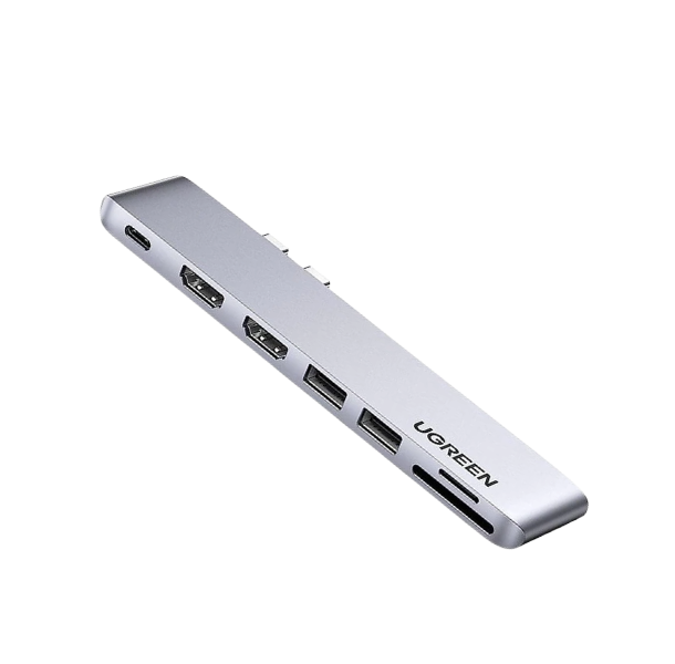 - Thiết bị mở rộng USB Type-C Ugreen 15852 hỗ trợ kết nối HDMI kép, được thiết kế để cung cấp mọi nhu cầu kết nối của bạn, HDMI x2, USB-C PD 100W, một cổng dữ liệu USB-C và USB-A x2 tốc độ 5Gbps.